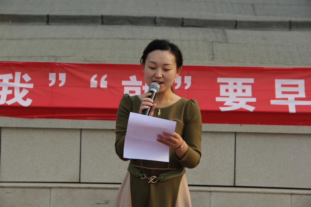 校团委副书记王斐在致辞中说:“为改变现今大学生不爱运动的生活状态,更好地贯彻落实党的十八届三中全会关于‘强化体育课和课外锻炼,促进青少年身心健康、体魄强健’的精神,积极响应由团中央、全国学联、教育部、国家体育总局下发的《关于开展大学生‘走下网络、走出宿舍、走向操场’主题群众性课外体育锻炼活动的通知》的号召,引导和帮助安阳工学院学生激发参加体育锻炼的主观能动性,形成良好的体育锻炼习惯,提升身体素质,并从中磨练坚强意志、培养良好品德和拼搏精神,我们特联合东方今报、阿里公益‘天天正能量’举行‘快乐公益·爱心早起’活动。我们将围绕‘快乐公益·爱心早起’开展‘青春励志报告’、‘我与宿管阿姨的那点事’征文大赛等系列活动。希望从即日起,同学们真正能够走下网络、走出宿舍,到操场运动,到校园内学习。”
