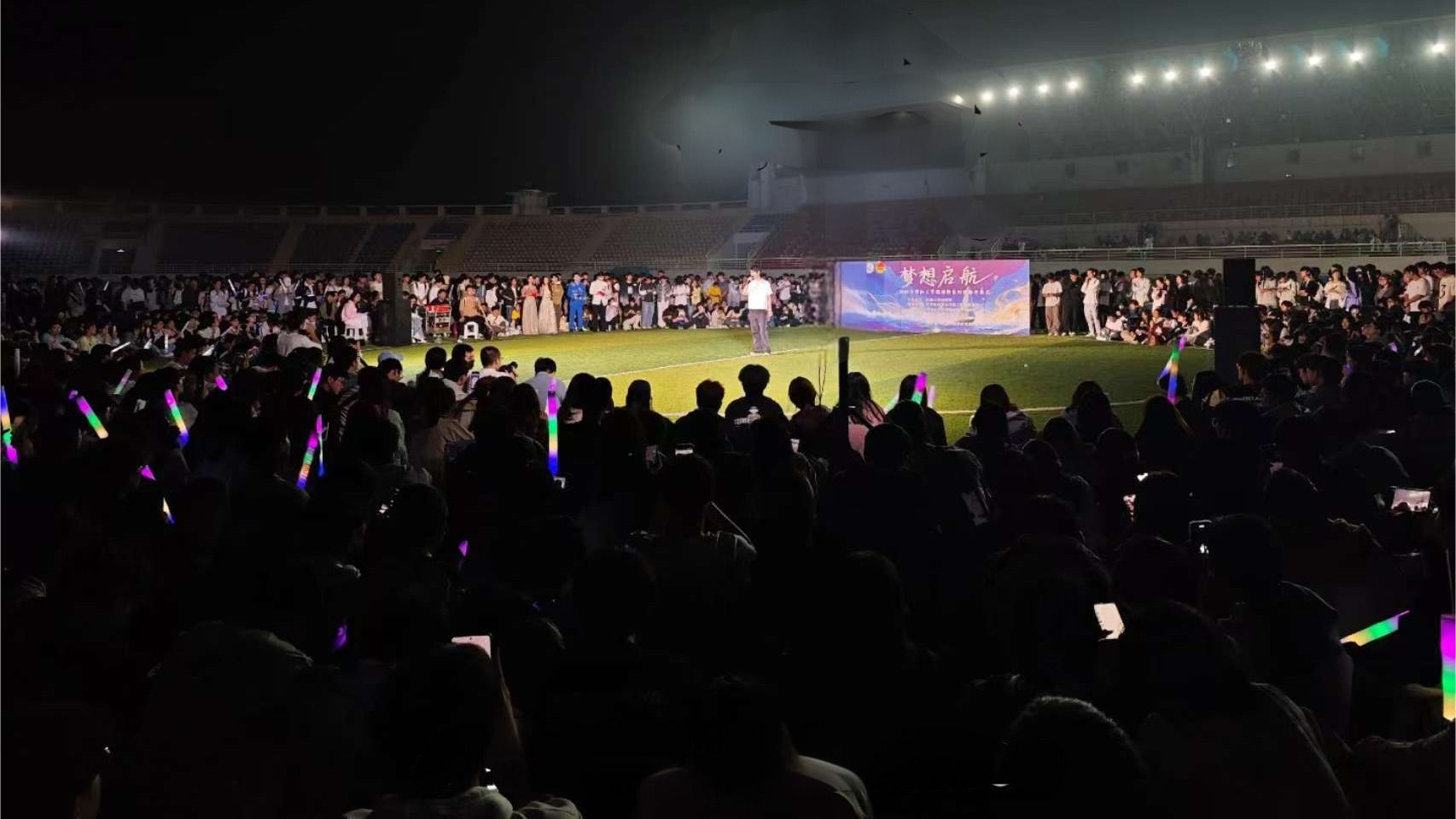 9月28日晚,以“梦想起航”为主题的2025级迎新系列活动开幕式在学校南体育场举行。学校各二级学院团委书记、新生辅导员与全体2025级新生齐聚一堂,在歌舞与欢笑中迎接崭新的大学生活,感受校园的温暖与活力。