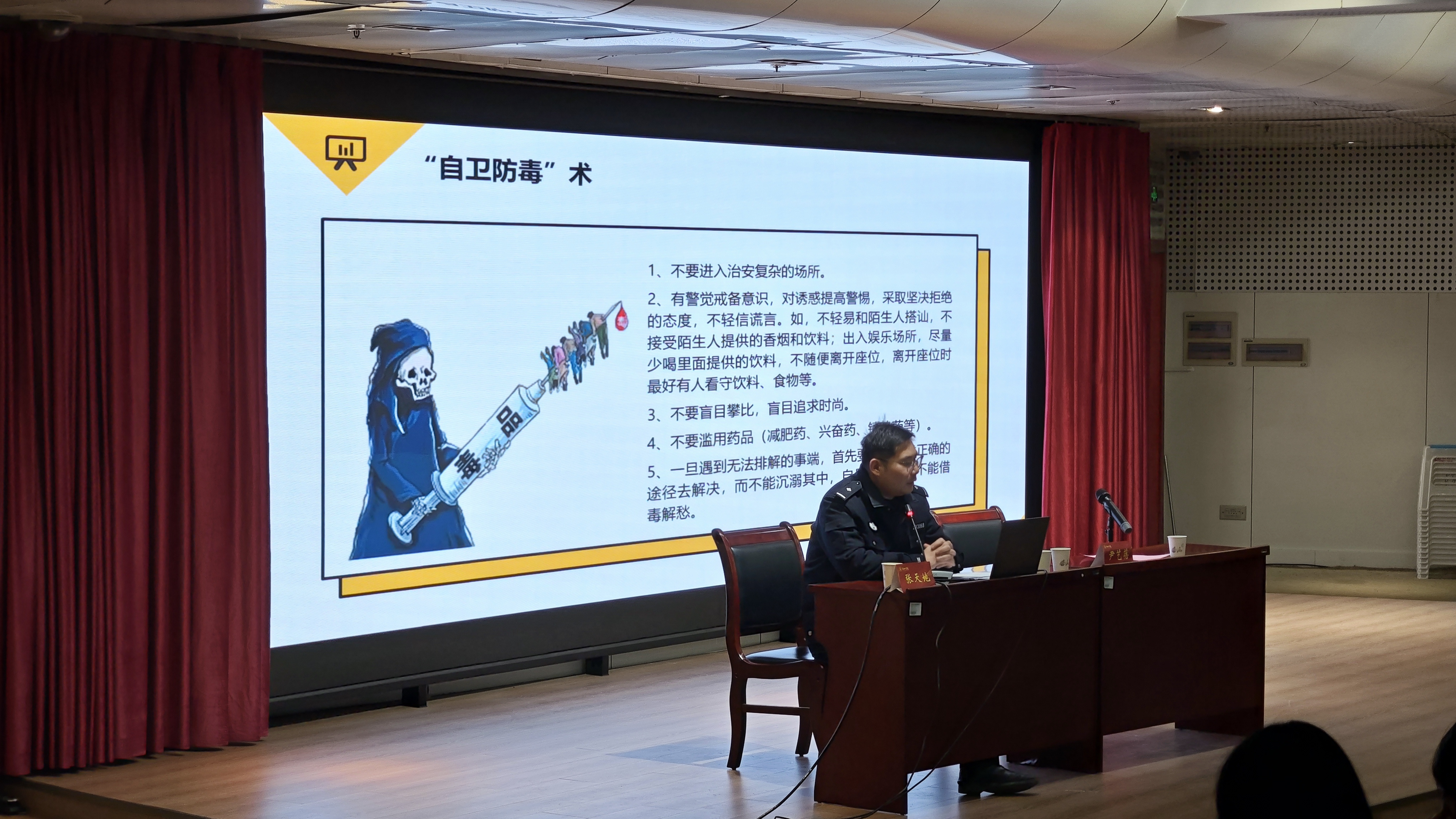 张天地民警以视频、图片等多媒体载体为纽带,通过真实鲜活的案例与沉浸式场景解析,详细介绍了常见毒品种类、危害、伪装形式及拒毒方法等,为大家上了一堂生动精彩的法治宣传课,强化了青少年对毒品危害的认知深度,助力大家掌握拒绝毒品的实用技巧,增强自我保护意识。