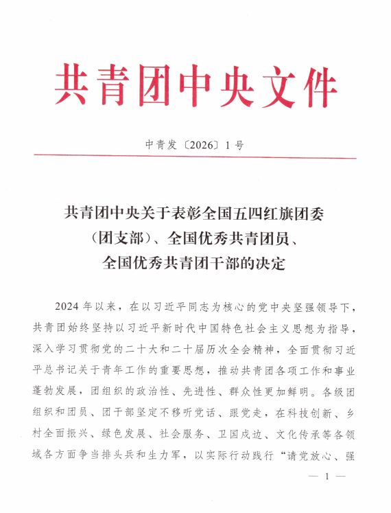 近日,共青团中央发布全国“两红两优”表彰决定,校团委荣获2025年度“全国五四红旗团委”至高荣誉。这一称号是共青团系统授予基层组织的最高荣誉,也是对该校共青团工作的高度认可。